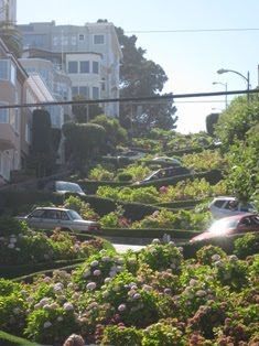 Palace of Fine Arts, apparently, many couples like to take their wedding photos here. The next picture, Lombard Street aka Crookedest Street. There are people living in both sides of the Crookedest Street and they are the ones maintaining the flora and fauna on their street. See the cars coming down the street in a zig-zag manner?